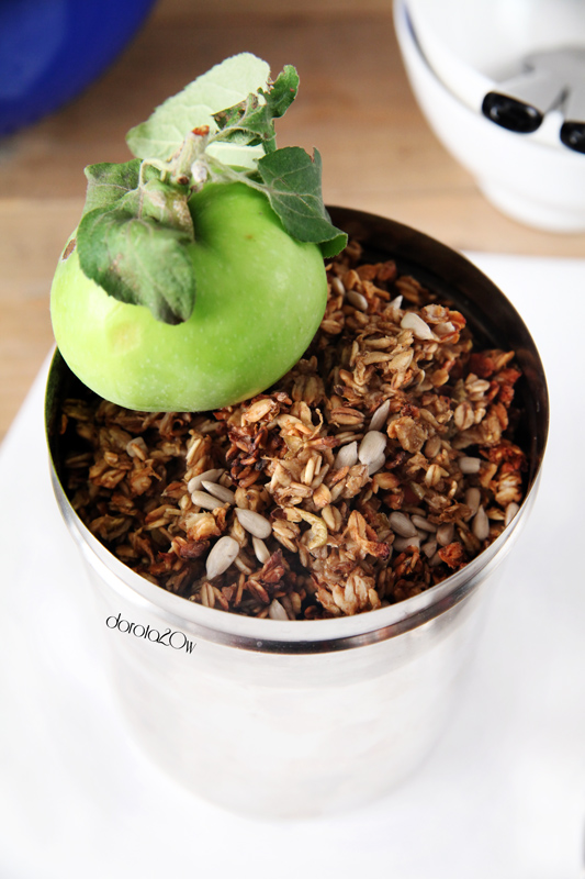 Po upieczenia granolę zostawiamy do ostygnięcia i przesypujemy do pojemnika.