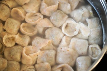 Ryż płuczemy w wodzie, odsączamy. Następnie zalewamy go ponownie wodą i zostawiamy na 30 min – potem znów płuczemy na sicie (po takim procesie ryż ugotuje się szybciej)