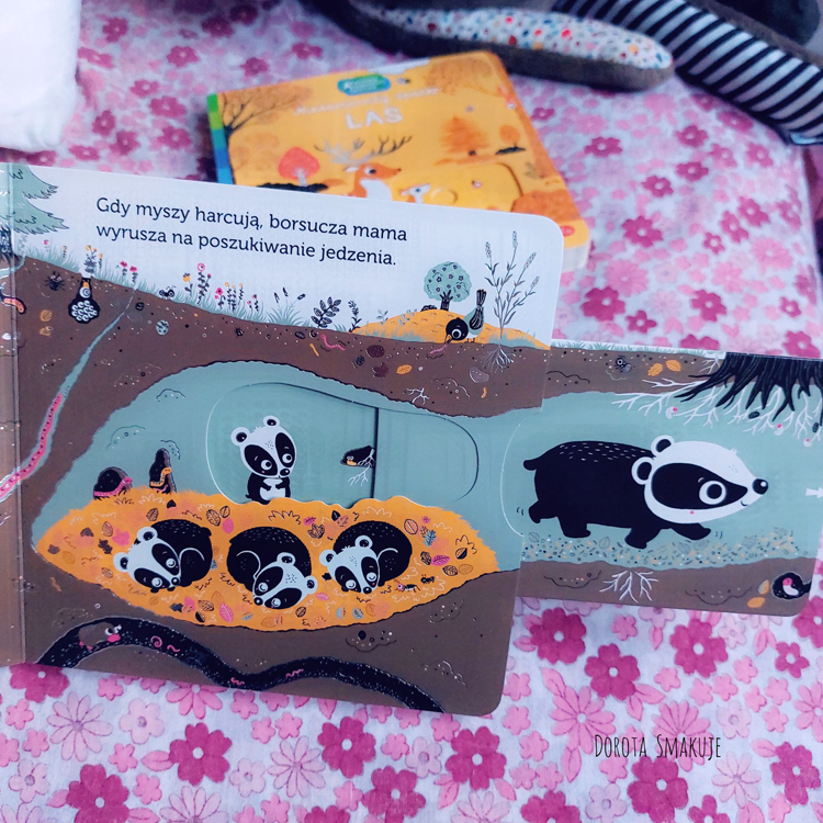 Książeczka „Las” opowiada o leśnych zwierzętach, które podczas jesieni przygotowują się do kolejnej pory roku czyli zimy. Wiewiórki zbierają i chowają orzeszki, jelenie ryczą na rykowisku, a dziki biegają po lesie.