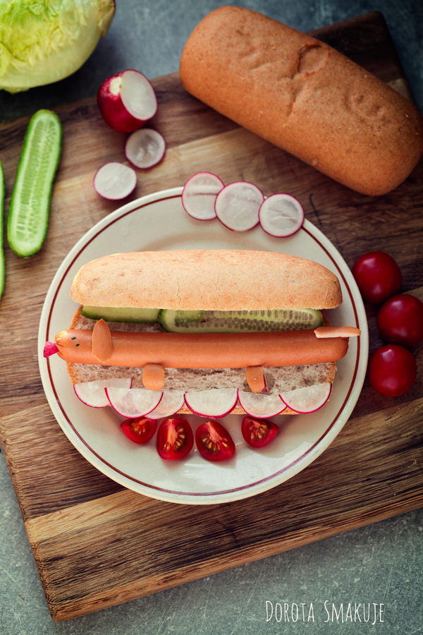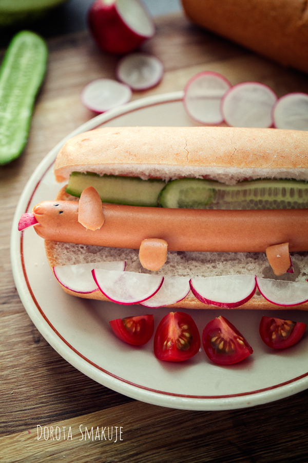 No dobra zgadnijcie na co było zamówienie dziecka i co przedstawia moja hot dogowa sztuka 😀