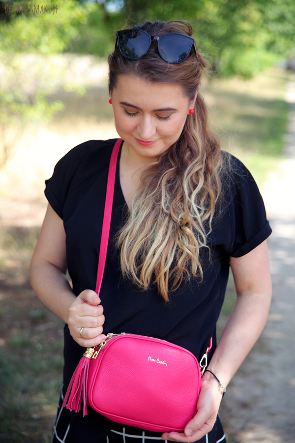 W tym roku postawiłam na piękną malinową listonoszkę, która zdobi cały outfit i naprawdę robi robotę.
