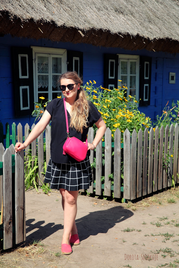 Lekka bawełniana bluzeczka i rozkloszowana spódniczka, do tego wygodne espadryle na płaskiej podeszwie i koniecznie okulary przeciwsłoneczne.