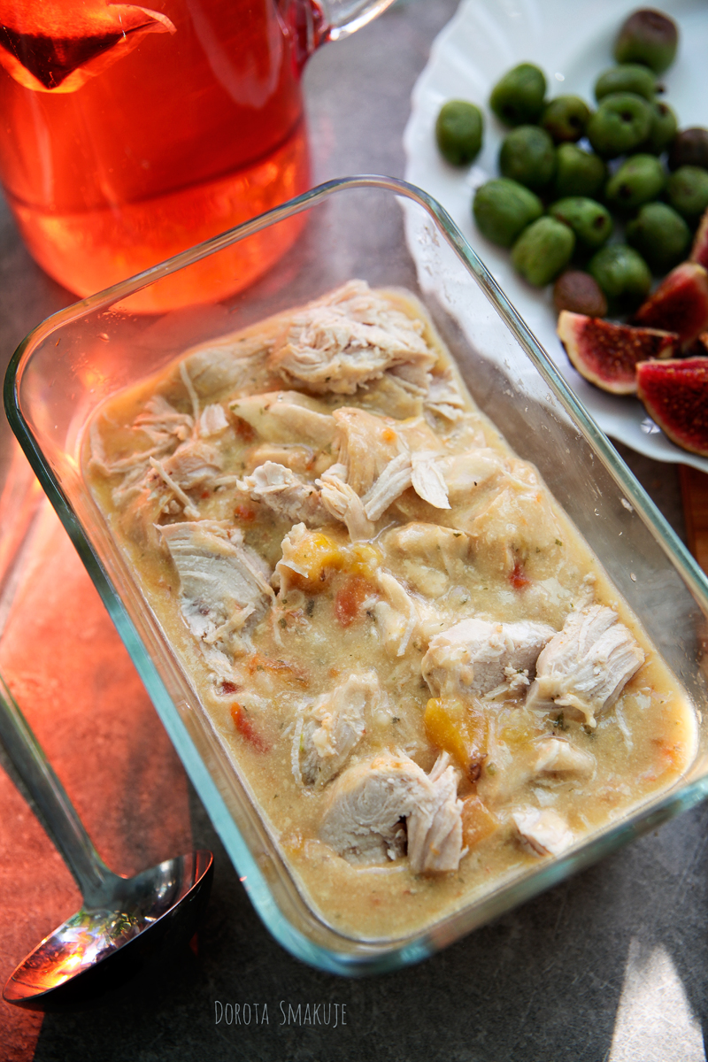 Po ugotowaniu mięso rwiemy na kawałki i podajemy w sosie.
