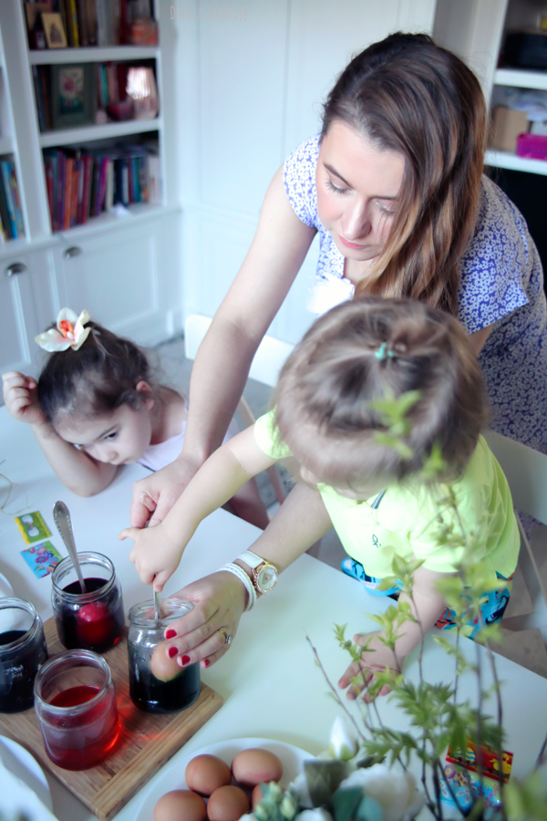 Dla mnie i mojego męża ważny jest wartościowy czas z dziećmi. Inwestujemy go w tworzenie wspólnych tradycji, zwyczajów, rytuałów. Co roku pamiętamy, by nie były to tylko wspólne obowiązki, ale wspólne przyjemności jak malowanie jajek. I tak, nie zawsze jest to proste by wybrać taką zabawę przy stole, kiedy zewsząd wołają obowiązki. Nie zawsze jest to łatwe, bo któreś z dzieci nie ma humoru, inne ma bunt a inne jest głodne, a mnie boli głowa i irytacja zapewniona. Warto jednak podejmować ten trud. Czemu?