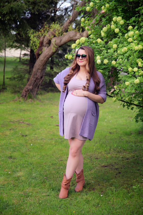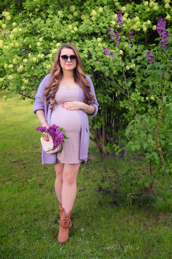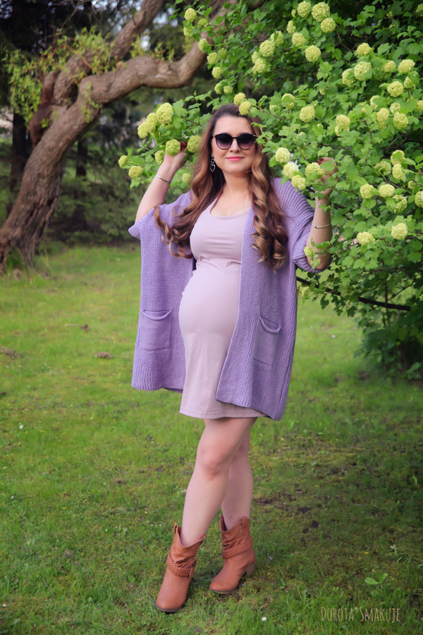 Do tego beżowe buty kowbojki – model bardzo modny w tym sezonie a ja muszę przyznać, że bardzo wygodne i stabilne co jest komfortowe w ciąży.