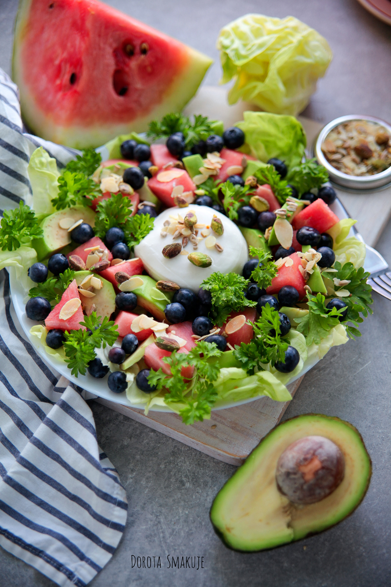PRZEPIS SAŁATKA Z BORÓWKAMI I BURRATĄ