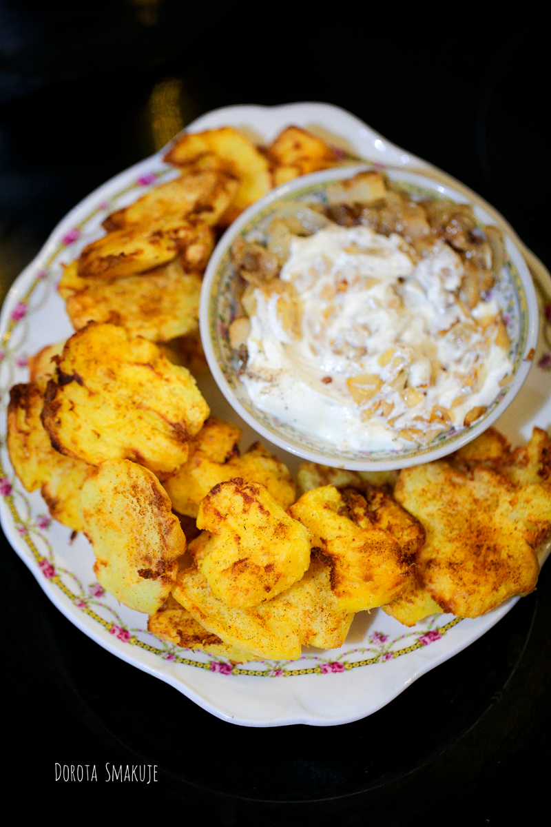 PRZEPIS CHRUPIĄCE GNIECIONE ZIEMNIAKI Z DIPEM CEBULOWYM