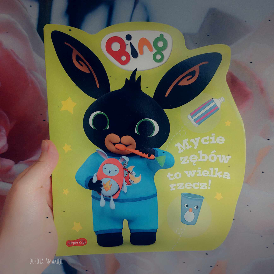 Mycie zębów to wielka rzecz, ale nie wszyscy to lubią. Ta prosta kartonowa książka o ciekawym kształcie przekona maluchy do regularnego, codziennego szczotkowania zębów. Razem z Bingiem nauczą się tego krok po kroku od nakładania pasty na szczoteczkę (nie za dużo, Bing!), aż po wypłukanie buzi. W książce jest wszystko, co uwielbiają dzieci. Proste, zrozumiałe i zabawne teksty zostały napisane przyjaznym, choć nie infantylnym językiem. Towarzyszące im wyraźne, kolorowe ilustracje z Bingiem i jego przyjaciółmi przykują uwagę tych maluchów, które nie umieją jeszcze czytać. Prościutka historia, w której czytelnik towarzyszy Bingowi w jego codziennych czynnościach, pozwoli najmłodszym utożsamić się z głównym bohaterem, a dla rodziców może być ciekawym punktem wyjścia do rozmów z dzieckiem o jego sprawach. Zaokrąglone rogi zapewnią bezpieczeństwo podczas zabawy, a wyjątkowo wytrzymały karton sprawi, że książka będzie służyć dziecku długo, nawet jeśli będzie chciało czytać ją w łazience podczas… mycia zębów. Dzięki dużym literom książkę można wykorzystać jako pomoc w nauce czytania, a dorośli znajdą w niej inspirację do tego, jak skutecznie namawiać maluchy do czyszczenia zębów.