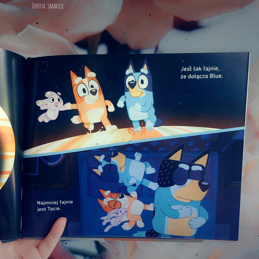 Książka ma duże, panoramiczne strony, na których znalazły się piękne, kolorowe ilustracje. To gratka dla fanów Bluey i Bingo w każdym wieku i dobry pomysł na prezent!
