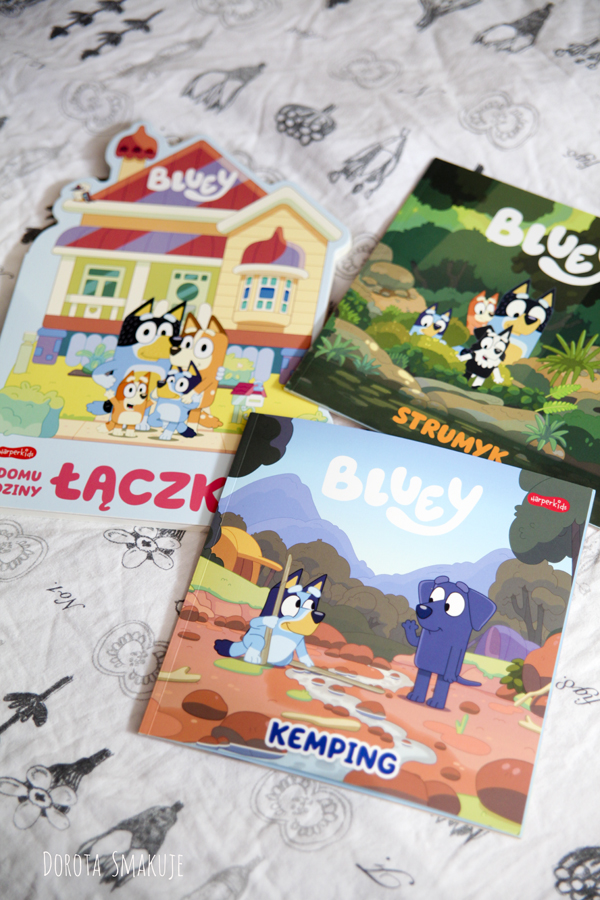 Ciepły klimat znany z kreskówki, zabawne powiedzenia i wyjątkowy język bohaterów sprawią, że maluchy nie będą chciały się rozstać z książką. Gruby karton pozwoli na długie godziny zabawy, a zaokrąglone rogi zapewnią bezpieczeństwo. Książkę można także ustawić pionowo, by sceny z domu Łączków posłużyły za scenografię do zabaw wymyślonych przez dziecko samodzielnie. Warto zajrzeć także do innych tytułów z serii Bluey i Bingo.