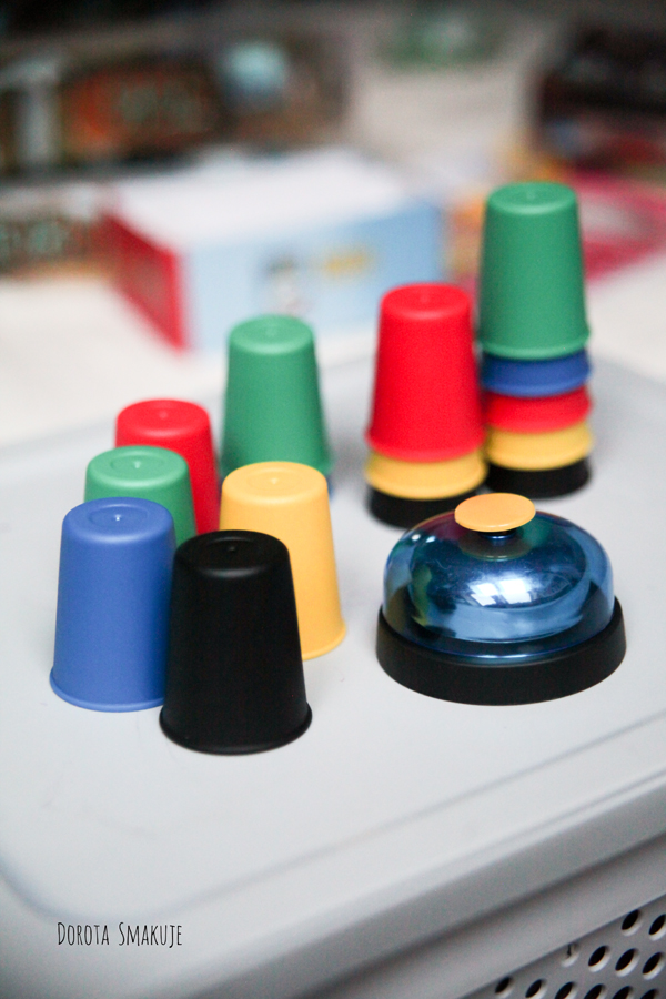 Rozgrywka polega na tym by jak najszybciej ustawić odpowiednio kubeczki i nacisnąć dzwonek!