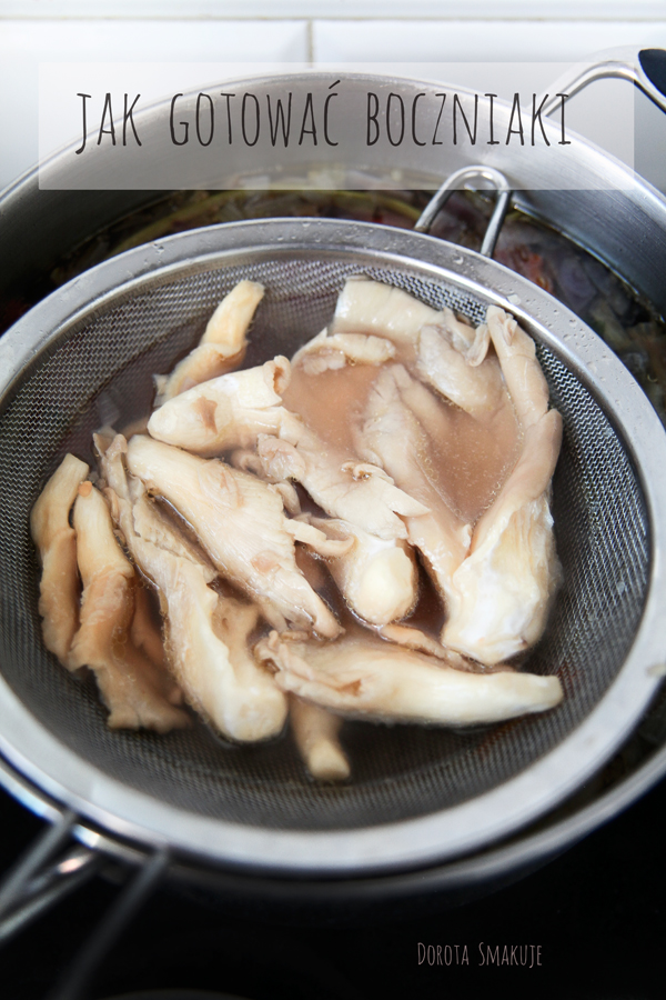 • Boczniaki wrzucamy na wrzątek lub do wrzącego bulionu bezpośrednio lub też kładziemy duże sito na garnku i na nie wrzucamy boczniaki (przykrywamy przykrywką)