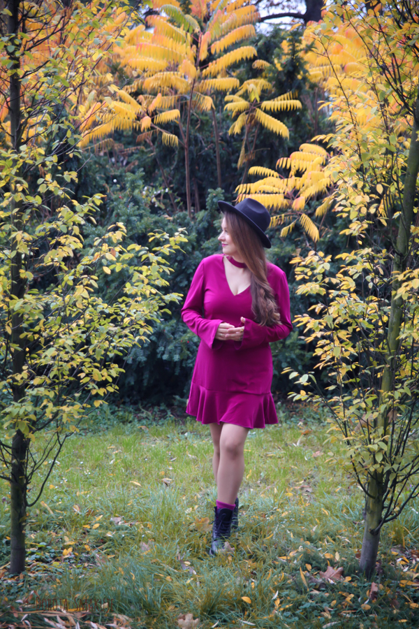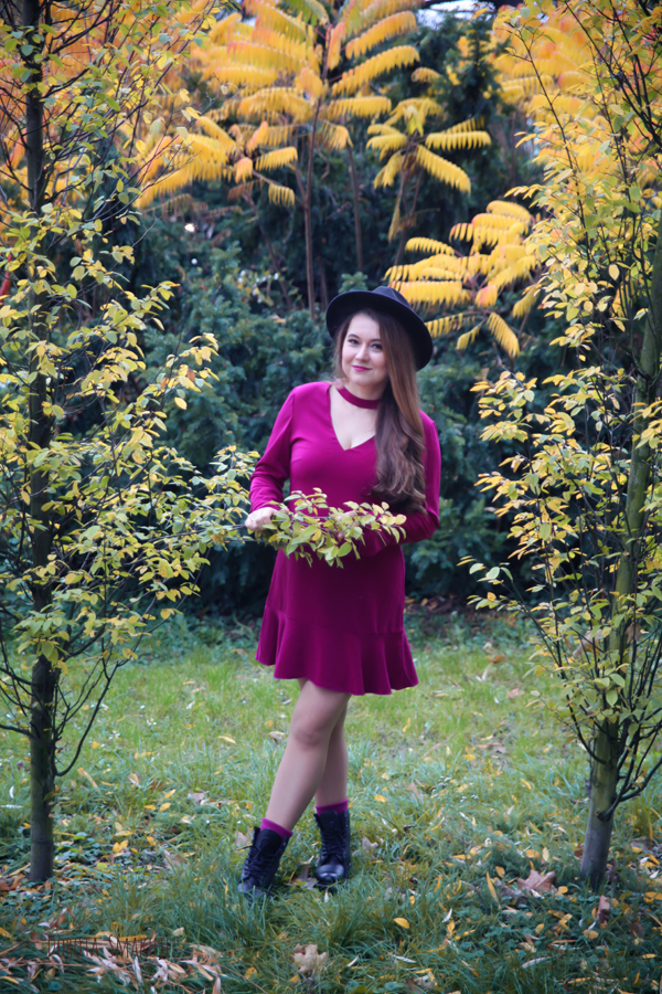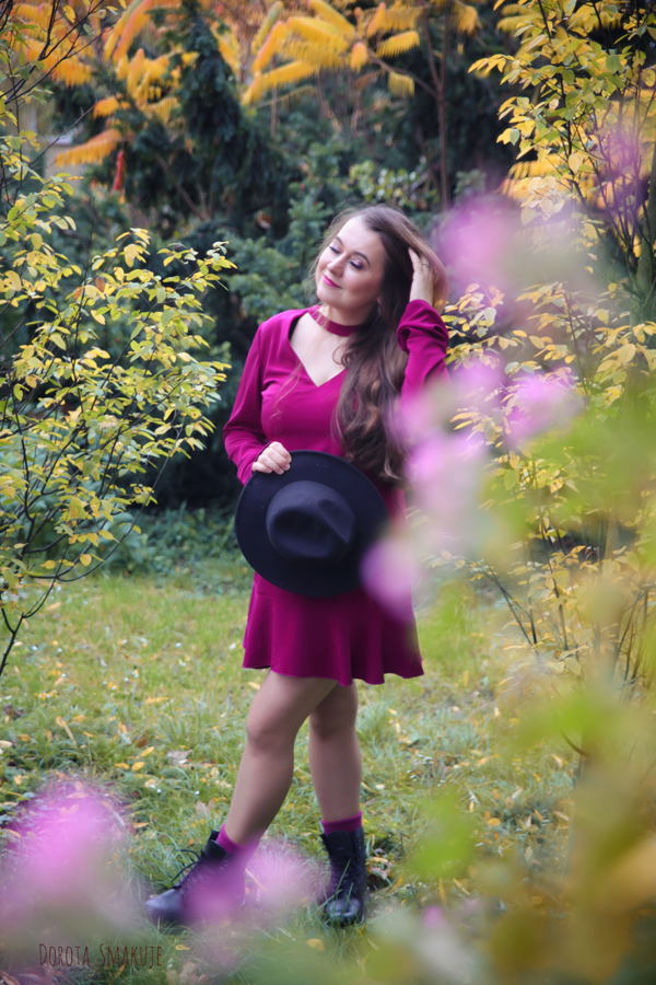 Wybierałam model w czarnym kolorze, który dobrze komponuje się z burgundową sukienką.
