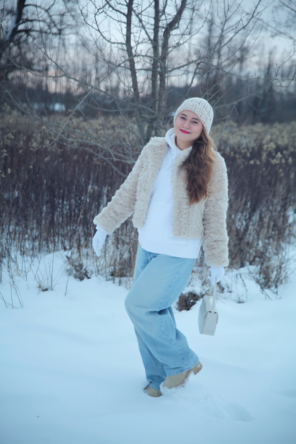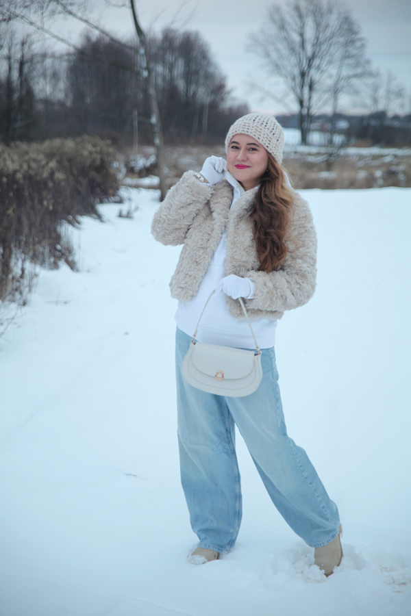 #zimowastylizacja #modazima #stylizacjazimowa #białeubrania #futro #jeansbaggy #botkinagrubepodeszwie #wittchen #zimowemoda #fashionblogger #casuallook #streetstyle #biżuteria #listonoszka #białaczapka #rękawiczki #złotekolczyki #bransoletki