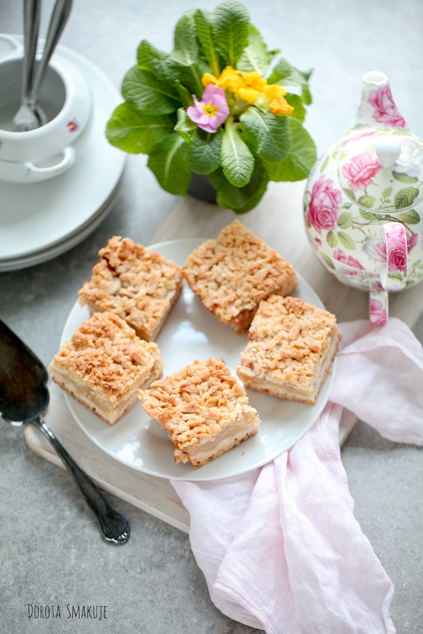 Ta wersja jest idealna na wielkanocny stół – kruche ciasto z aromatem waniliowym, soczyste jabłka z nutą cytryny i delikatna kruszonka na wierzchu. Można ją podać lekko ciepłą z kulką lodów waniliowych albo na zimno, z bitą śmietaną. Tak czy inaczej, zniknie w mgnieniu oka.