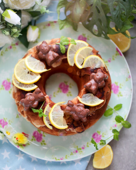Babka cytrynowa dekorowana czekoladkami